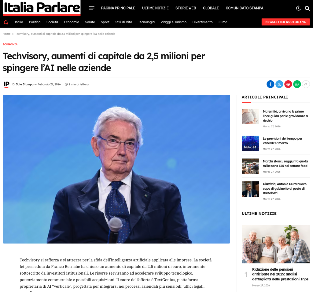 PrecedenteIl sole 24 ore – economia techvisory aumenti di capitale da 25 milioni per spingere l’ai nelle aziende