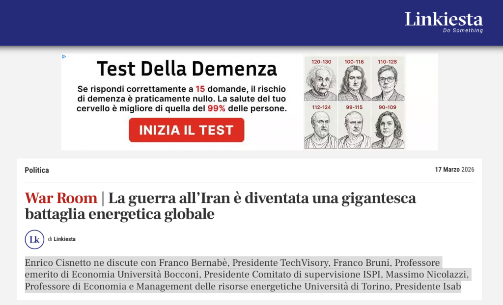 Enrico Cisnetto ne discute con Franco Bernabè, Presidente TechVisory, Franco Bruni, Professore emerito di Economia Università Bocconi, Presidente Comitato di supervisione ISPI, Massimo Nicolazzi, Professore di Economia e Management delle risorse energetiche Università di Torino, Presidente Isab